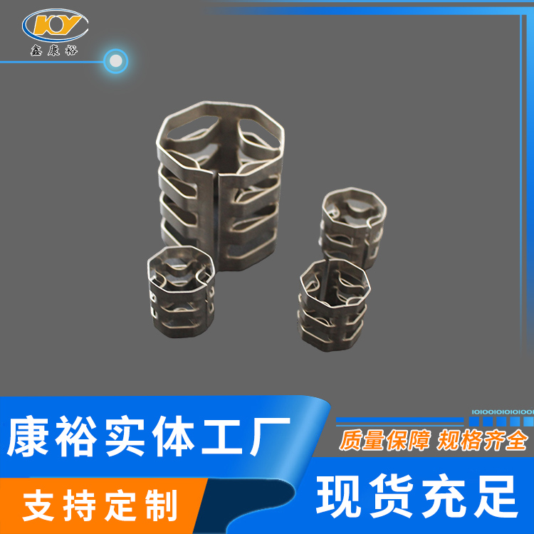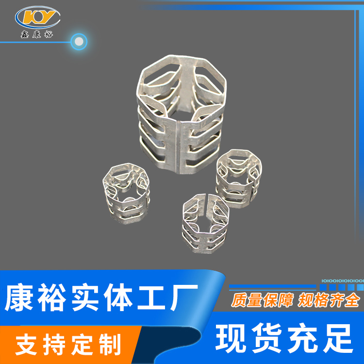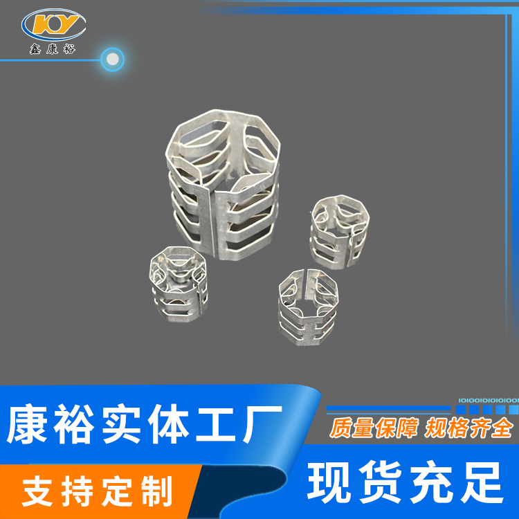 康裕金屬八四內弧環(huán)類似花環(huán)開關的金屬填料,也稱麥勒環(huán)填料。它的特點是環(huán)壁開敞面積大,所以具有通量大、阻力小和傳質效率高等特點。